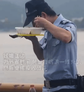 民警以木桶为舟