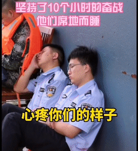 在堤坝上连续执勤十几个小时后