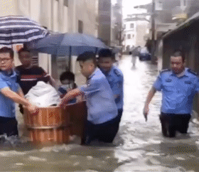 无数公安干警在暴雨中