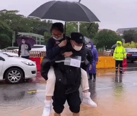 特巡警将考生一个个背进考场