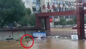 街面上的积水已经漫过了人的胸和颈部