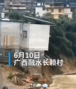 ▲广西一栋三层民房轰然垮塌,即刻被洪水吞没