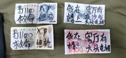1、民警据求救钞票捣毁传销窝点在湖南株洲一条人行道上,有人捡到了几张百元大钞,上面用笔写着求助信息。民警接警后赶到现场,捣毁了一处传销窝点,解救了6名受害者,抓捕了17名涉嫌传销人员。(湖南24小时)