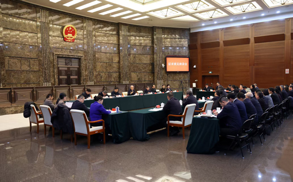 最高法党组成员、副院长王中明主持。最高法党组成员、副院长茅仲华、李勇,党组成员、政治部主任孙镇平,党组成员、副院长高晓力,审判委员会专职委员刘贵祥、王淑梅,最高法有关单位负责同志参加会议。(记者:白龙飞丨摄影:孙若丰)