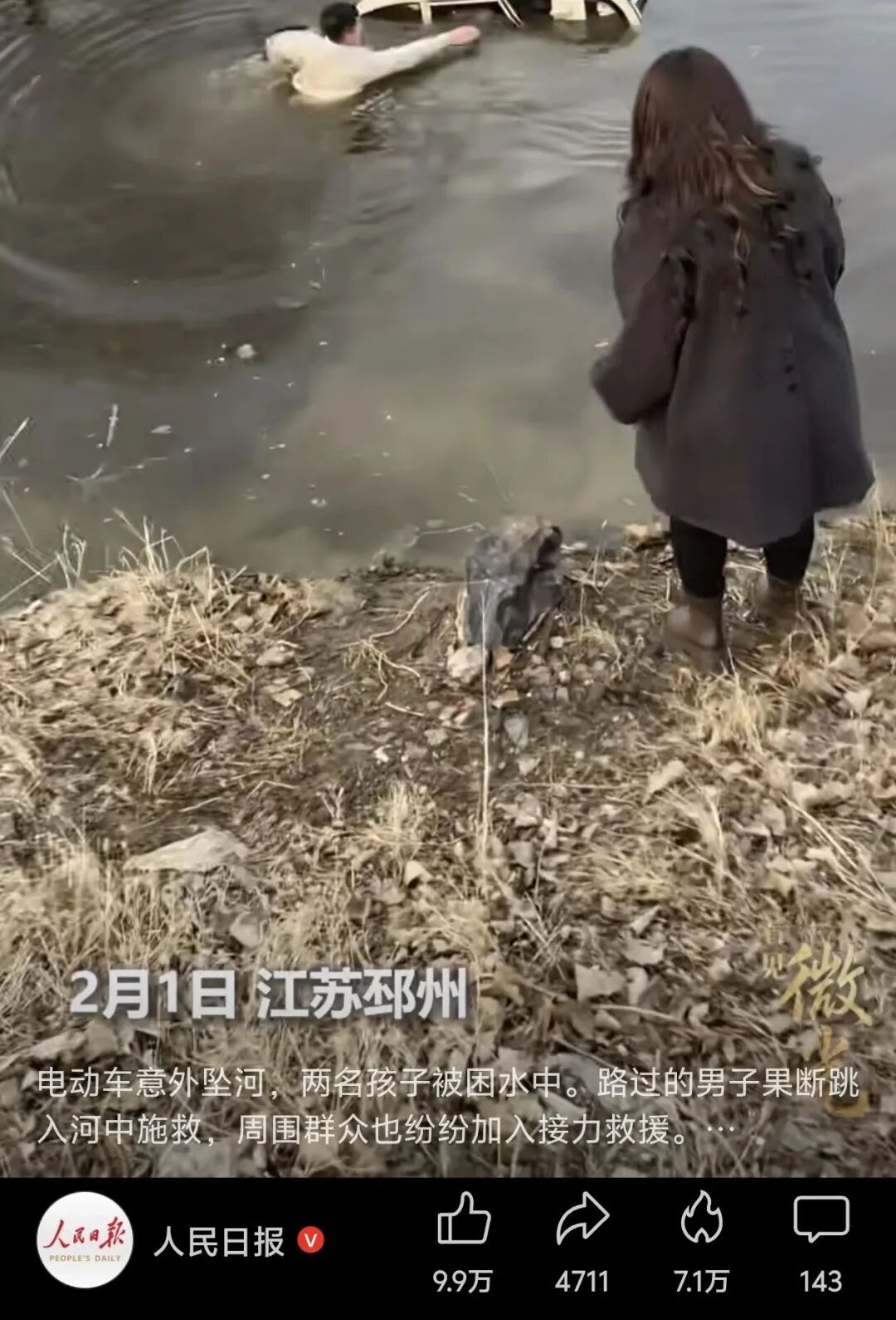 救人视频经现场群众记录传播后,迅速在全网刷屏。人民日报、中国青年报等多家媒体纷纷转发点赞,无数网友留言:“平凡英雄,真的了不起!”“冰冷河水,热血热心!”