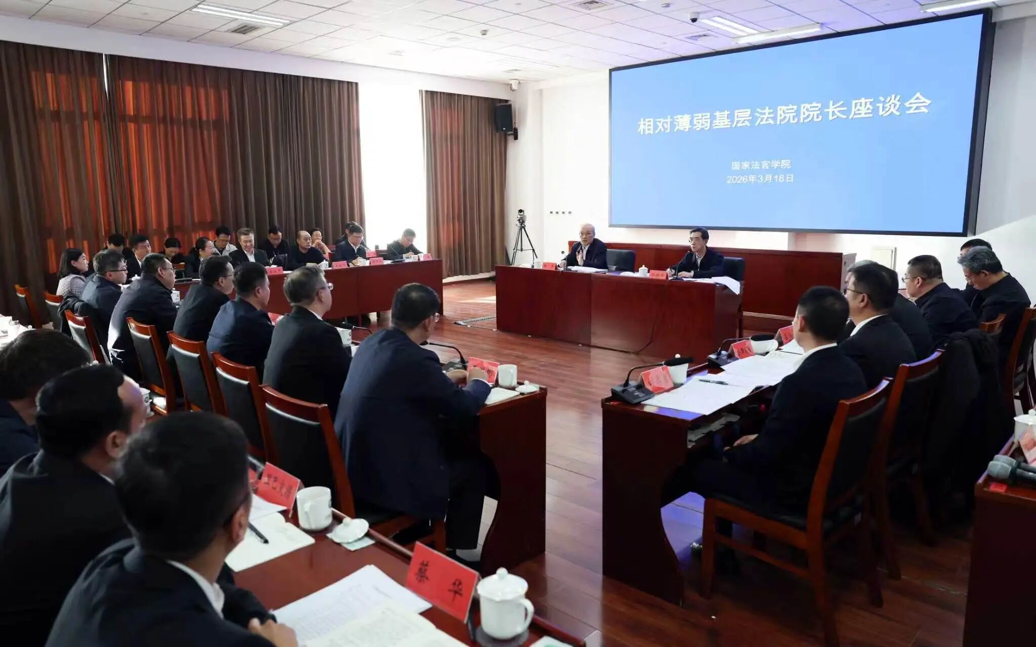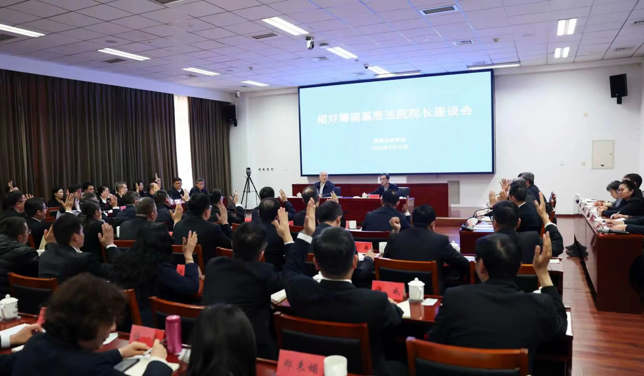 3月18日,最高人民法院组织召开第三批相对薄弱基层法院院长座谈会,最高人民法院党组书记、院长张军同到国家法官学院学习培训的薄弱院院长座谈交流。