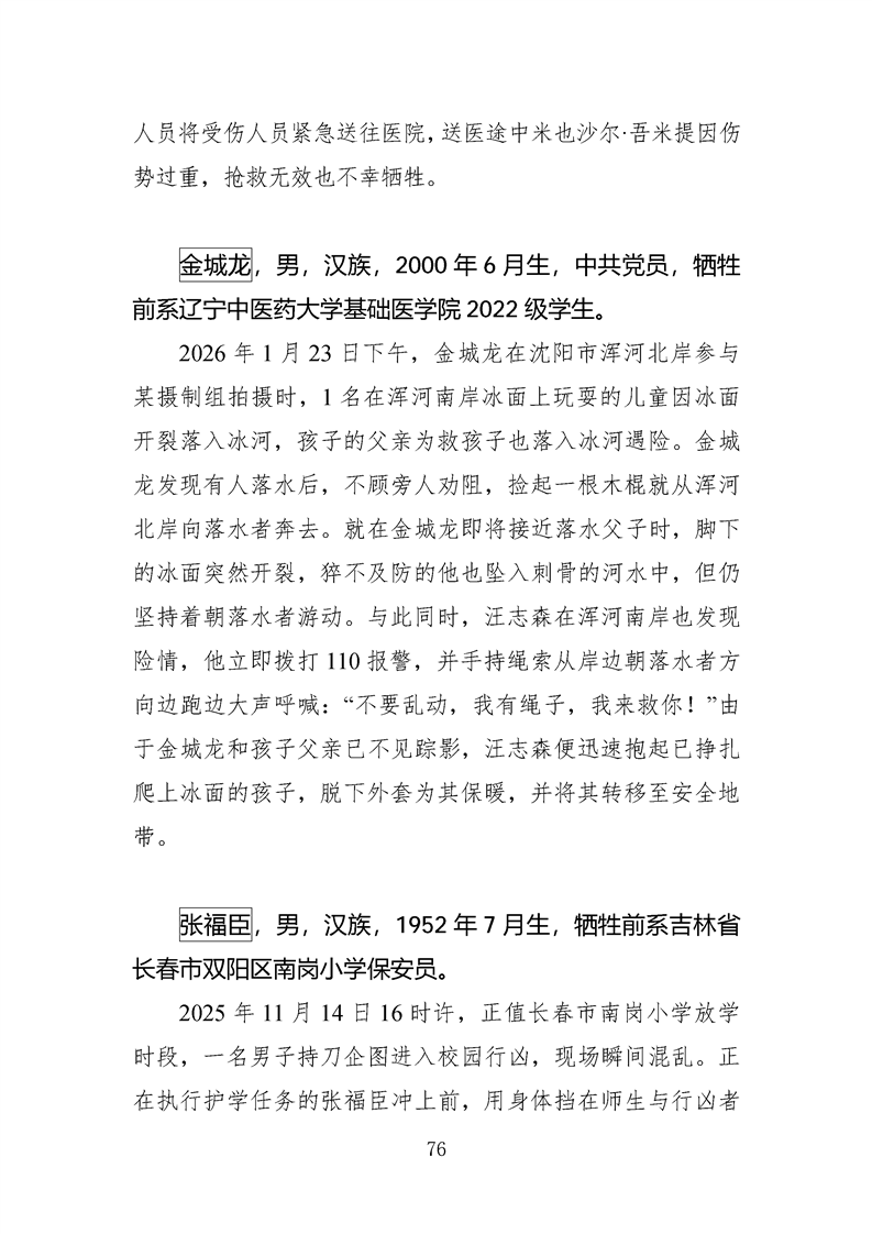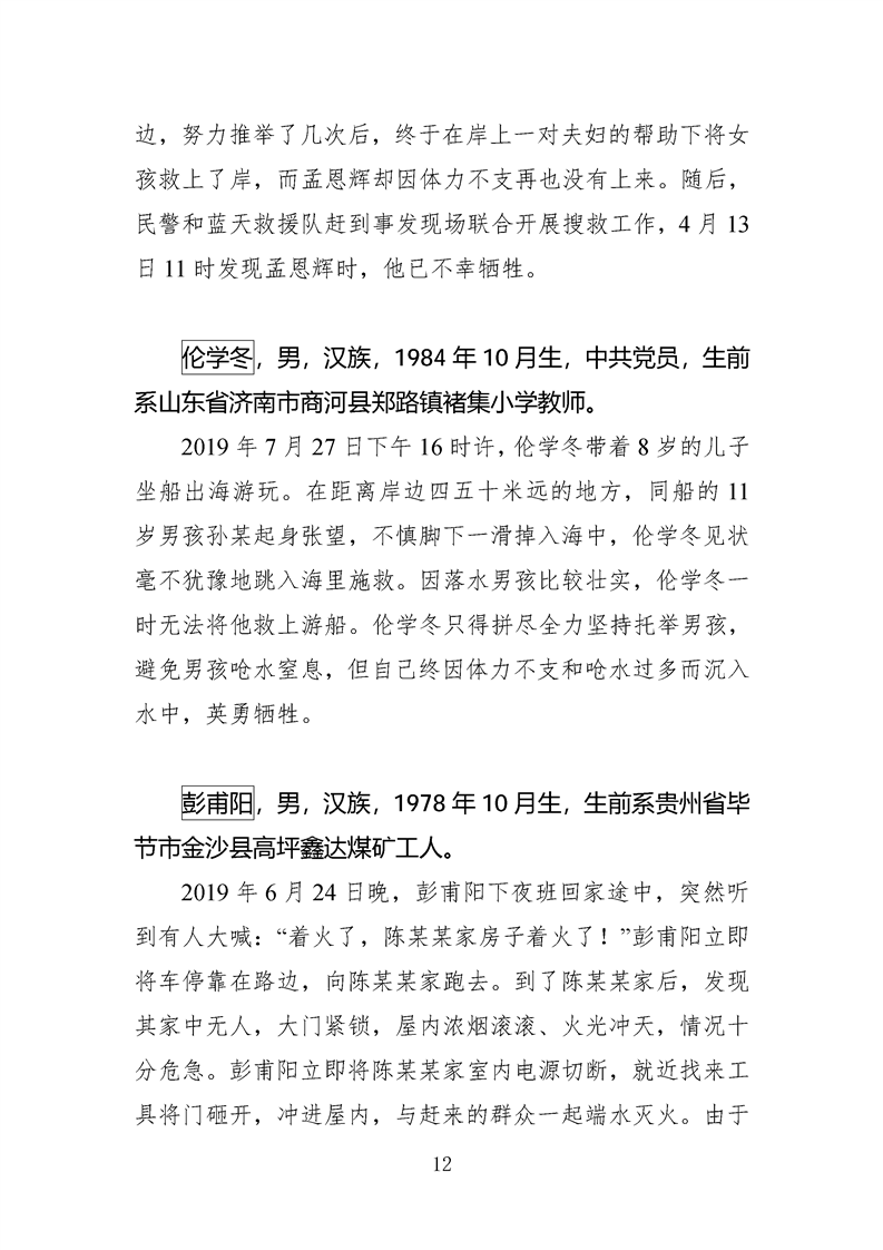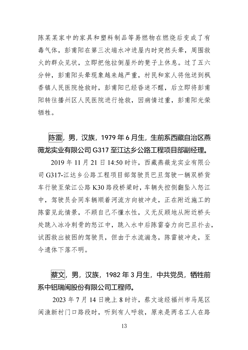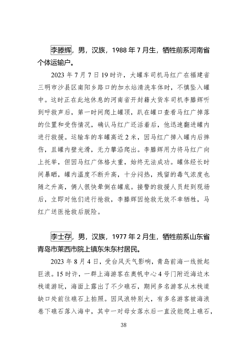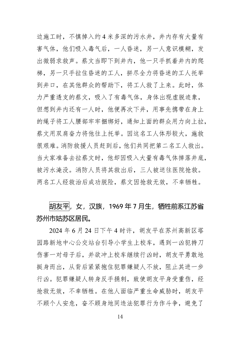 第十四、十五届全国见义勇为英雄模范及历次中央政法委见义勇为勇士榜牺牲人员事迹
