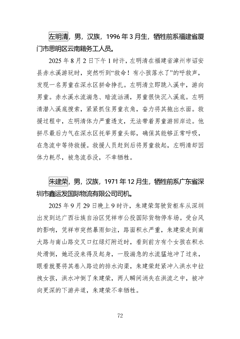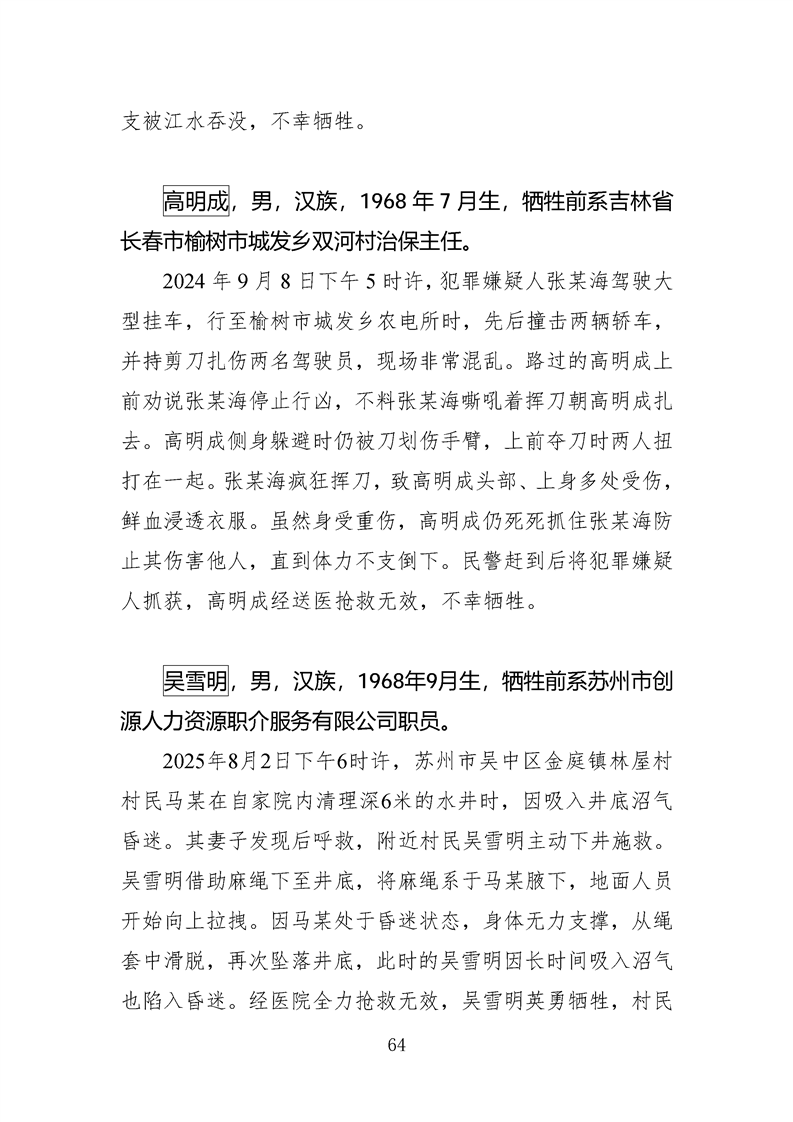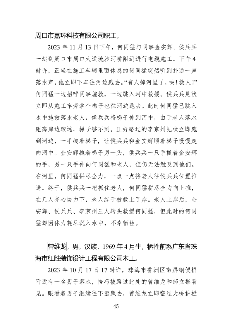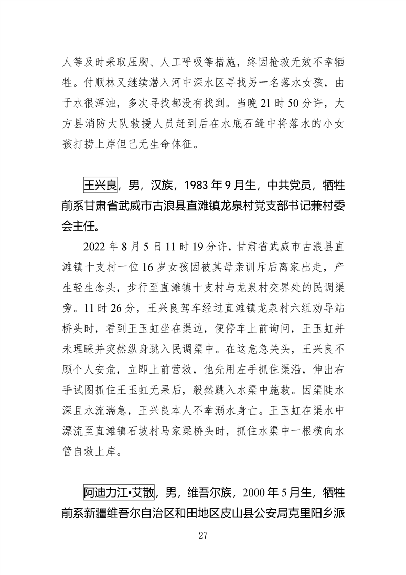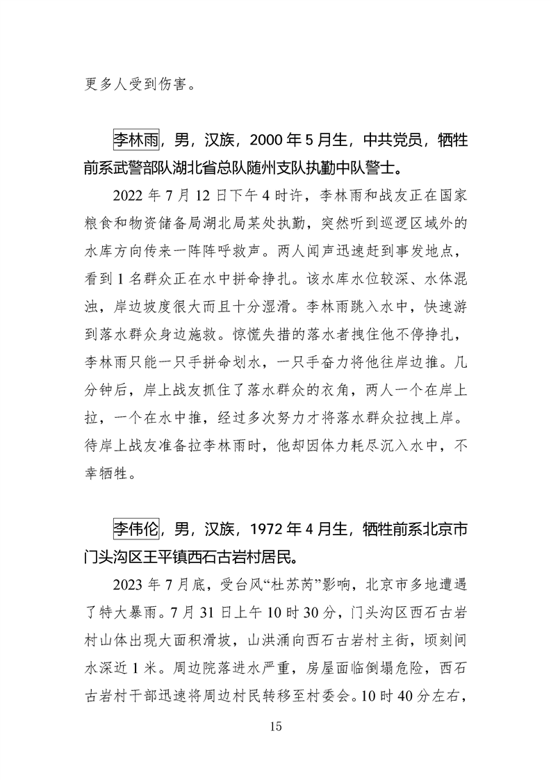 第十四、十五届全国见义勇为英雄模范及历次中央政法委见义勇为勇士榜牺牲人员事迹