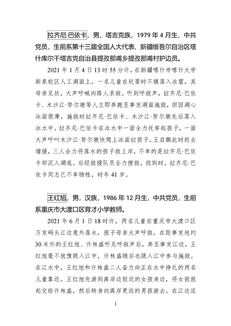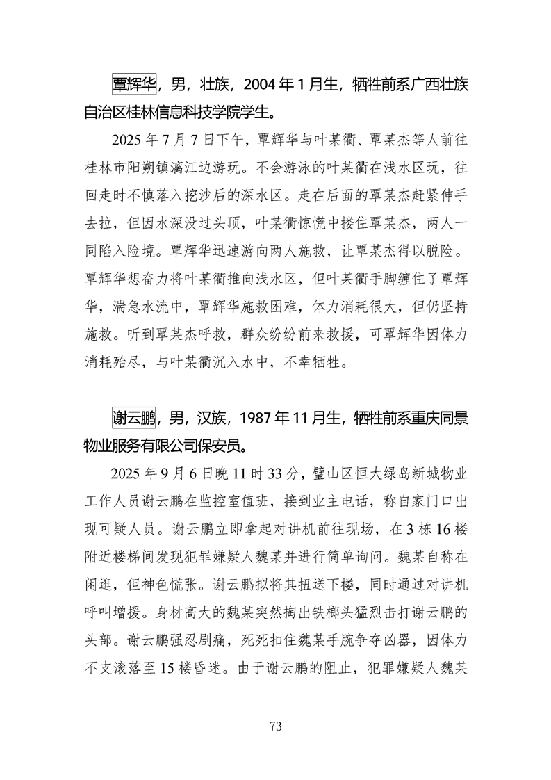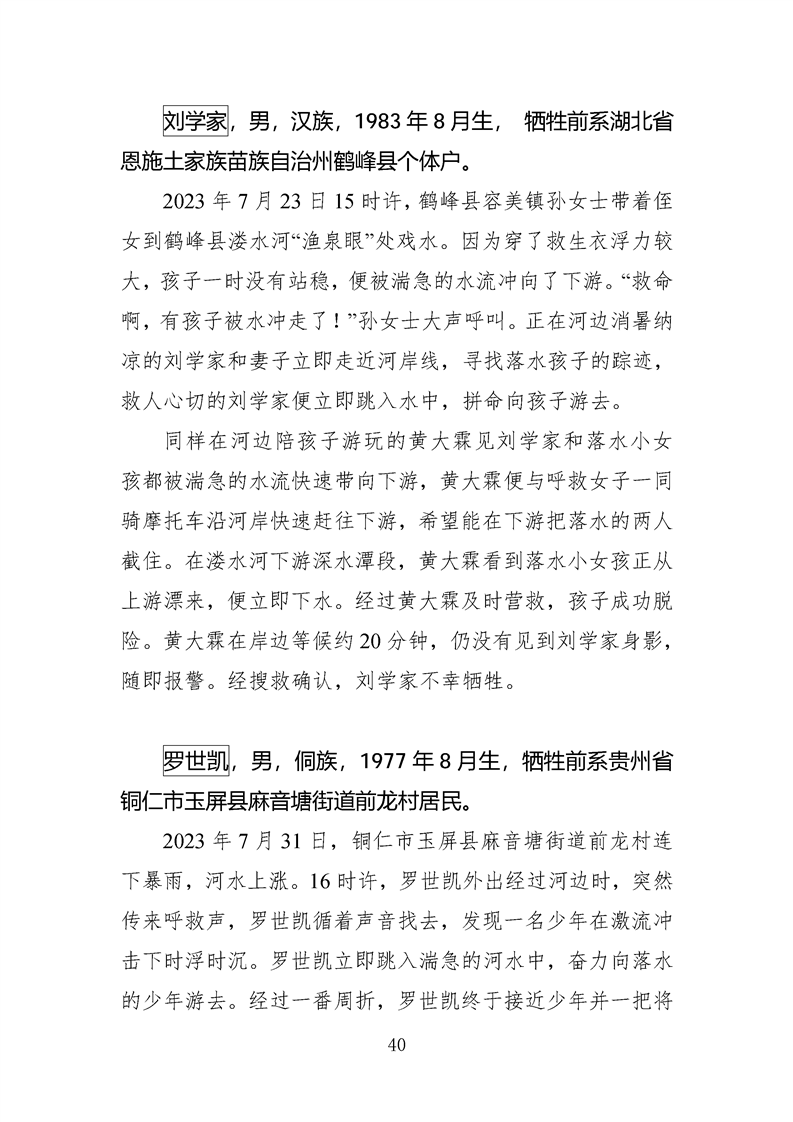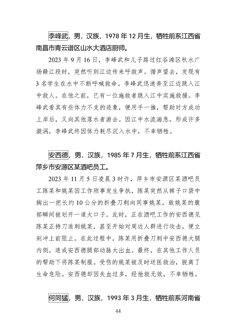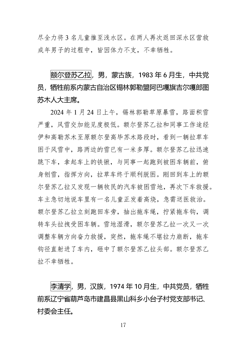 第十四、十五届全国见义勇为英雄模范及历次中央政法委见义勇为勇士榜牺牲人员事迹
