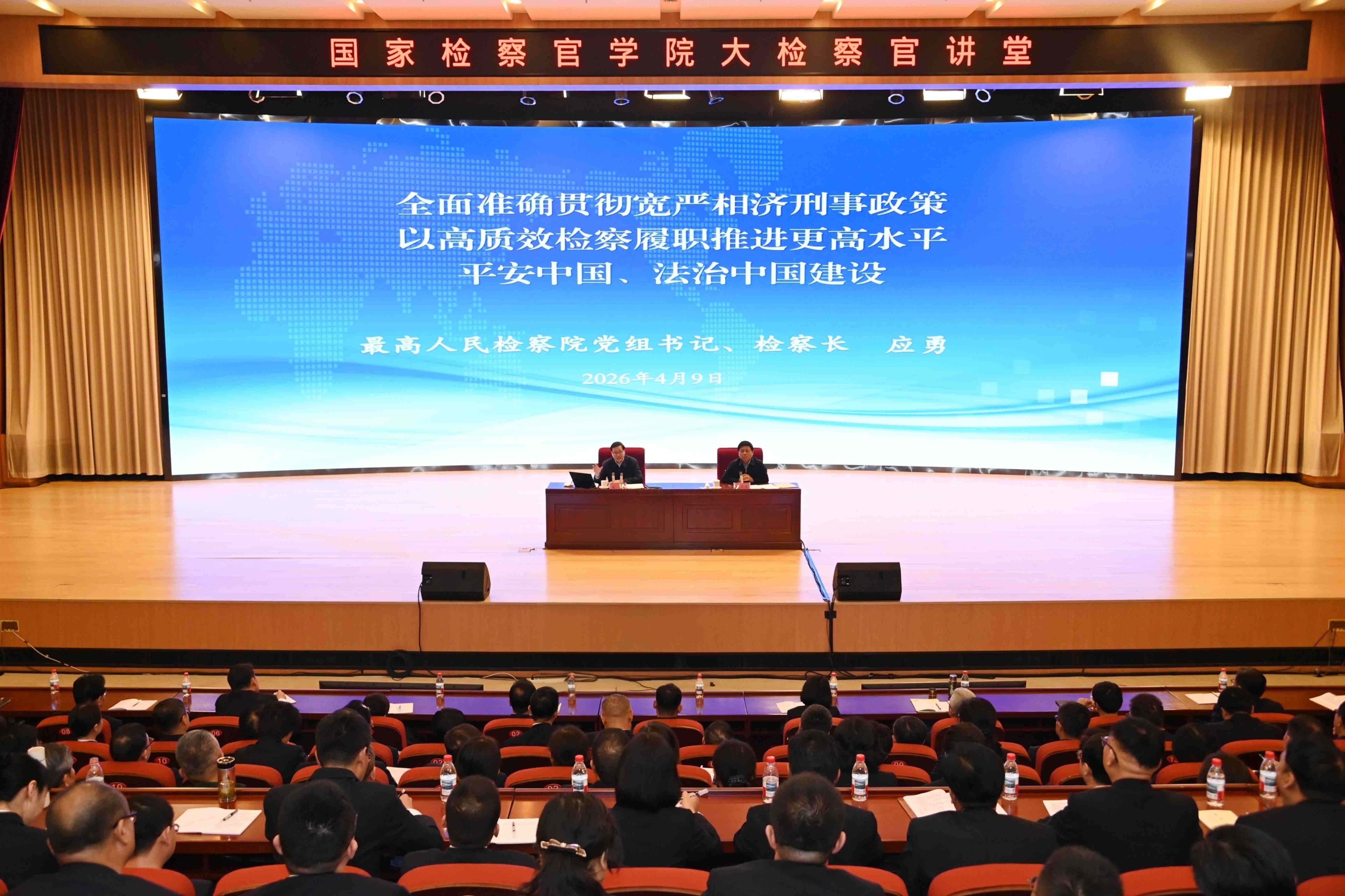 春深四月,万物竞发。国家检察官学院迎来2026年春季学期首批调训的4个班次450余名学员。4月9日下午,最高人民检察院党组书记、检察长应勇专程来到国家检察官学院为学员们授课。他强调,宽严相济刑事政策是党领导人民依法惩治犯罪、有效预防犯罪、开展犯罪治理的重要刑事政策,必须全面准确贯彻,做到依法该严则严、当宽则宽、宽严相济、宽严适度、罚当其罪,努力让人民群众在每一个司法案件中感受到公平正义,以高质效检察履职推进更高水平平安中国、法治中国建设。