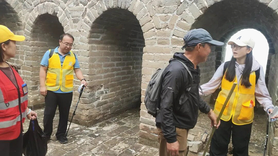 “这里新修建开放了一大段‘北京观长城森林步道’可供游览。”“青行万里”服务队队长、延庆法院八达岭法庭庭长孙世乐指着不远处的步道说,“但仍有不少人攀爬未开放的长城段落,就需要我们及时巡护并引导劝返。”