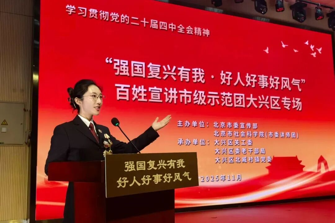 为深入学习贯彻党的二十届四中全会精神,北京市检察机关用好北京检察官宣讲团工作机制,推荐两名优秀宣讲员参加北京市“强国复兴有我”百姓宣讲市级示范团全市巡讲,为推动全会精神深入基层贡献检察力量。