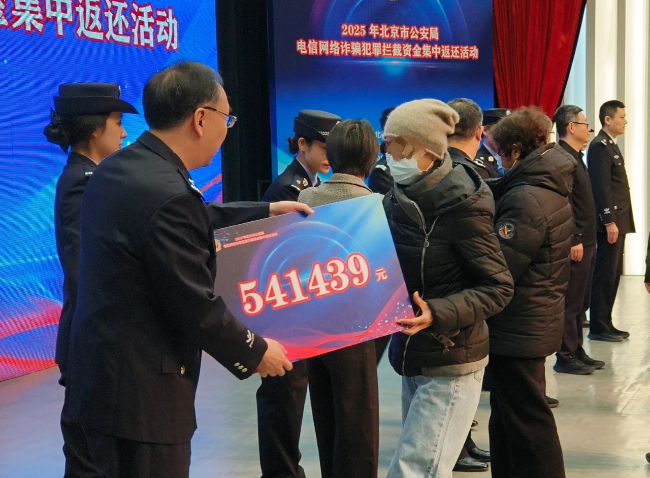 “真没想到,被骗的钱还能追回来!”12月9日,北京市公安局举行2025年电信网络诈骗犯罪拦截资金集中返还活动,30名市民拿回了3000余万元被骗资金。据统计,今年以来,北京警方累计向被骗群众返还涉诈资金8亿余元。