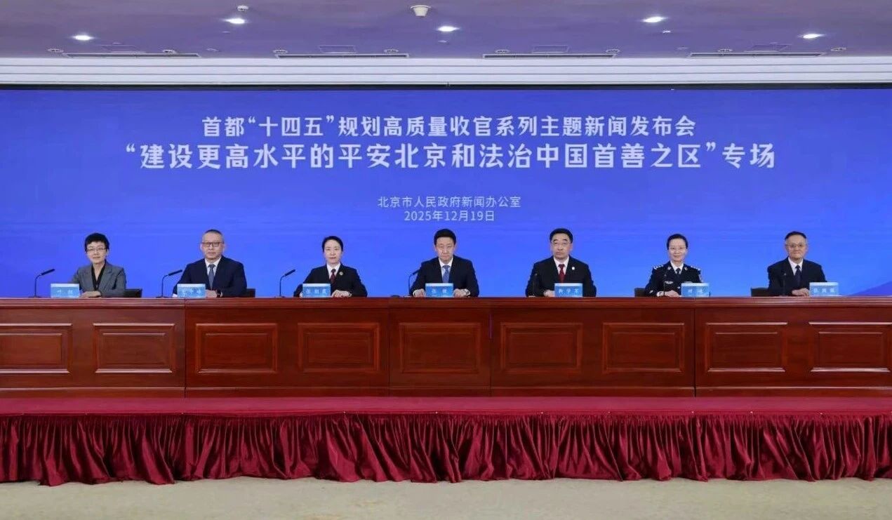 2025年12月19日,在北京市委市政府新闻发布厅,北京市人民政府新闻办公室举行首都“十四五”规划高质量收官系列主题新闻发布会——建设更高水平的平安北京和法治中国首善之区专场。发布会上,市委政法委、市高级人民法院、市检察院、市公安局、市司法局相关负责同志介绍了工作情况并答记者问。