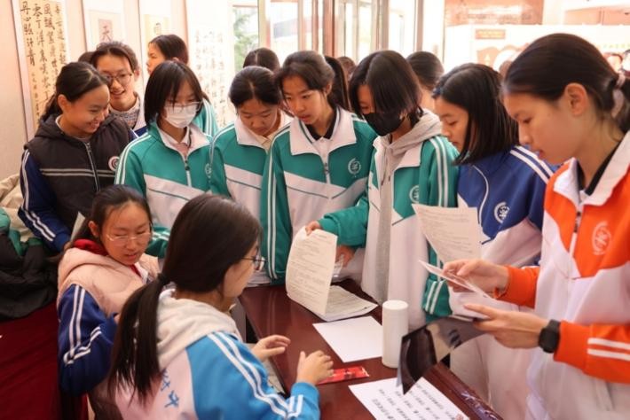 沈杰书记观看同学们领取法治文化节文创产品(首师大附中提供)