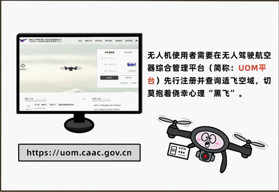 那怎么才能合法飞呢?很简单,在无人驾驶航空器综合管理平台(简称UOM平台)注册登记,查好适飞空域,看清禁飞限制,并按要求报备审批就可以啦!流程走到位,飞行才安心。