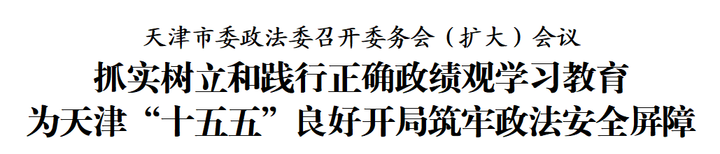 3月9日,天津市委政法委召开委务会(扩大)会议,传达学习习近平总书记关于树立和践行正确政绩观的重要指示和中央、中央政法委和天津市委有关会议文件精神,部署树立和践行正确政绩观学习教育工作,研究贯彻落实措施。