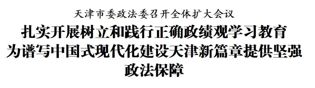 近日,中共天津市委政法委员会召开全体扩大会议,深入学习贯彻习近平总书记关于树立和践行正确政绩观的重要讲话和重要指示精神,全面传达学习中央、中央政法委及市委相关会议部署要求,紧密结合天津政法工作实际,对扎实开展树立和践行正确政绩观学习教育作出部署。天津市委常委、市委政法委书记衡晓帆主持会议并讲话,副市长、市公安局局长王瑛玮,市高级人民法院院长李静,市人民检察院检察长王光辉出席。