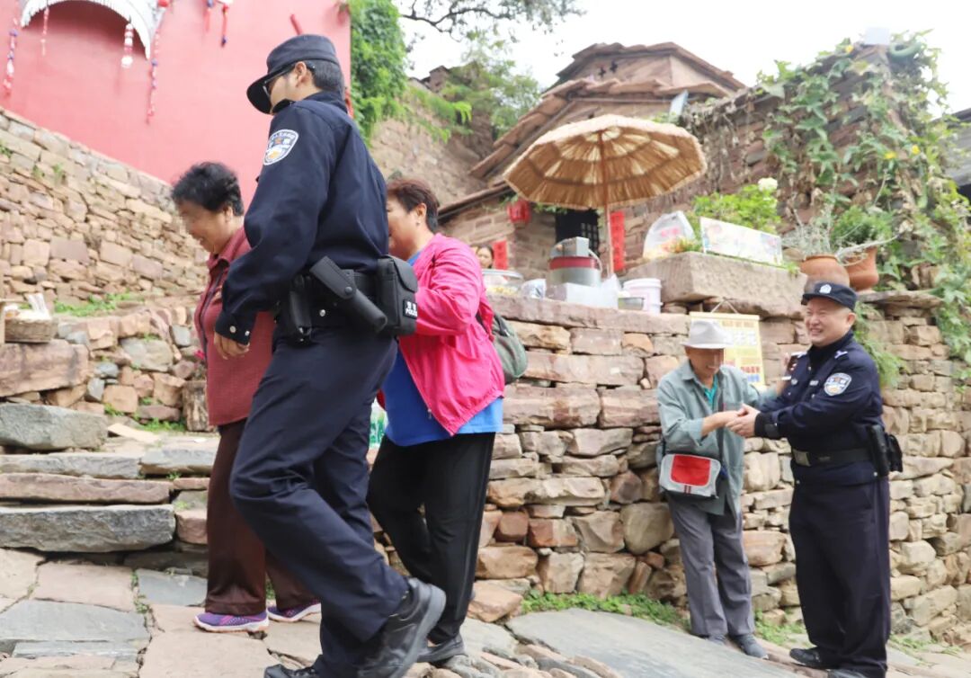 在景区执勤中,民警辅警们看到上坡腿脚不好的老年人,总要上前搀扶一下;看到游客不小心摔倒,会立即开展救助;如果有游客在不停刷手机,民辅警会微笑着进行反诈提醒,这样的场景随处可见……