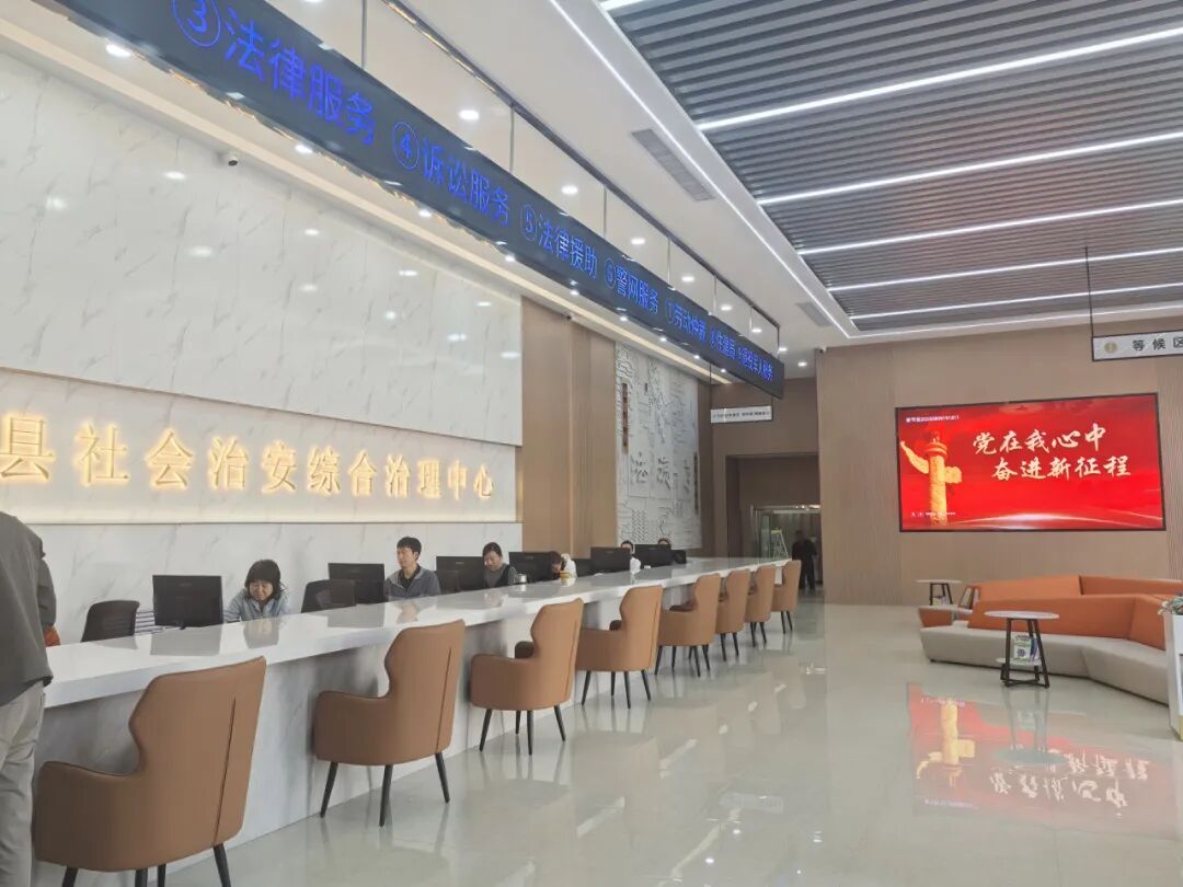 走进山阴县综治中心,1400多平方米的空间井然有序。综合接待大厅宽敞明亮,便民服务、休闲等候、业务办理、法治服务等五大区域划分清晰。这里早已不是单一的信访接待点,而是整合了网格服务管理、行政复议、法律咨询等多功能的“超级服务港”。法院、公安、司法、信访、人社、住建等十余个部门常驻办公,工会、妇联等群团组织轮流入驻,乡镇街道随时响应,“两代表一委员”、金牌调解员、法律专家等社会力量汇集于此。群众反映矛盾纠纷、寻求法律帮助、咨询政策疑问,只需迈入一个门。“就像进了‘政务超市’,啥烦心事都能找到对口柜台,真省心!”前来咨询土地政策的李大姐感触颇深。
