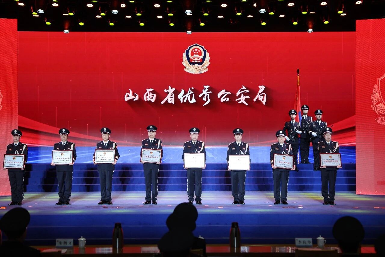 荣誉仪式上,为“全国公安系统二级英雄模范”太原市公安局禁毒支队副支队长牛继文、汾阳市公安局环食药侦大队大队长孙玉峰颁发了奖章和证书,为“山西省优秀公安局”“山西省优秀公安基层单位”“山西省优秀人民警察”代表颁授了荣誉,发布了20名2025山西省“最美基层民警”名单,为2025年荣退民警代表颁授了从警纪念牌。