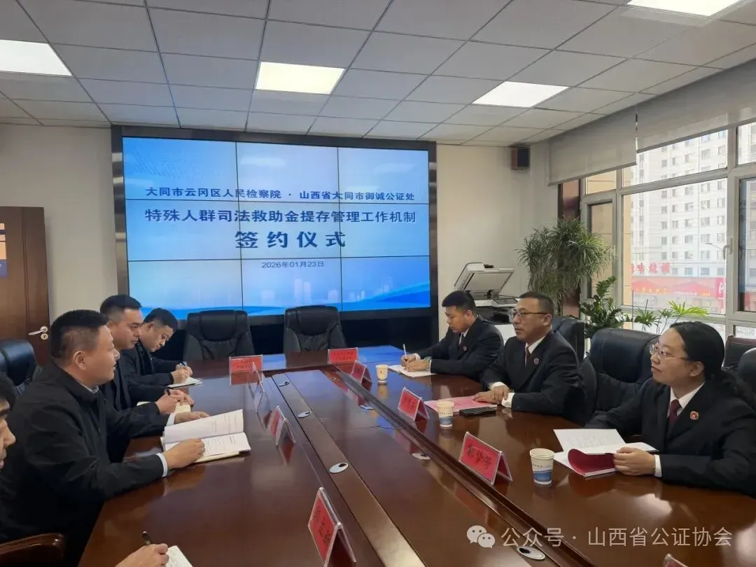 今年1月,山西省大同市云冈区人民检察院与大同市御诚公证处会签司法救助金提存文件,率先建立司法救助金公证提存工作机制,以制度层面的创新举措,切实强化司法救助金的规范管理、精准使用、长效保障,有效破解特殊群体司法救助金发放难题。