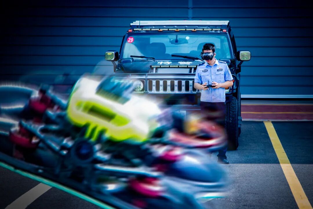 太原市公安局巡警支队民警进行穿越机训练。