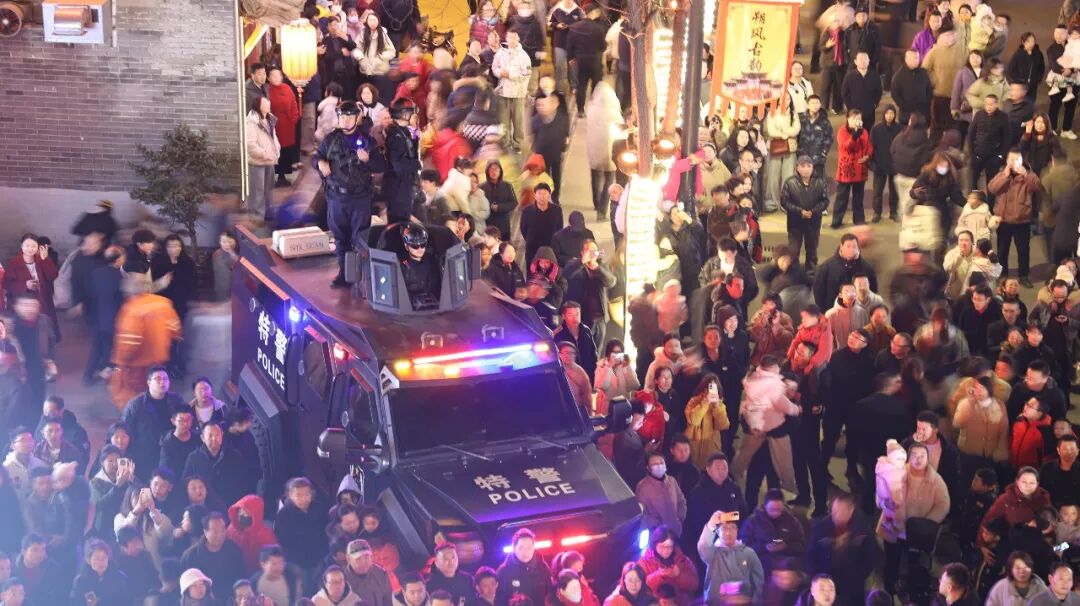 晋城市公安局城区分局巡警坚守岗位,确保灯会安全有序、群众安心赏灯。