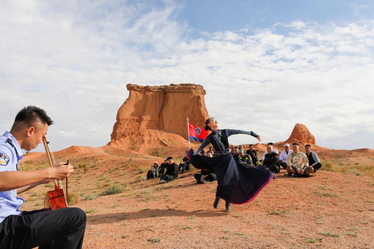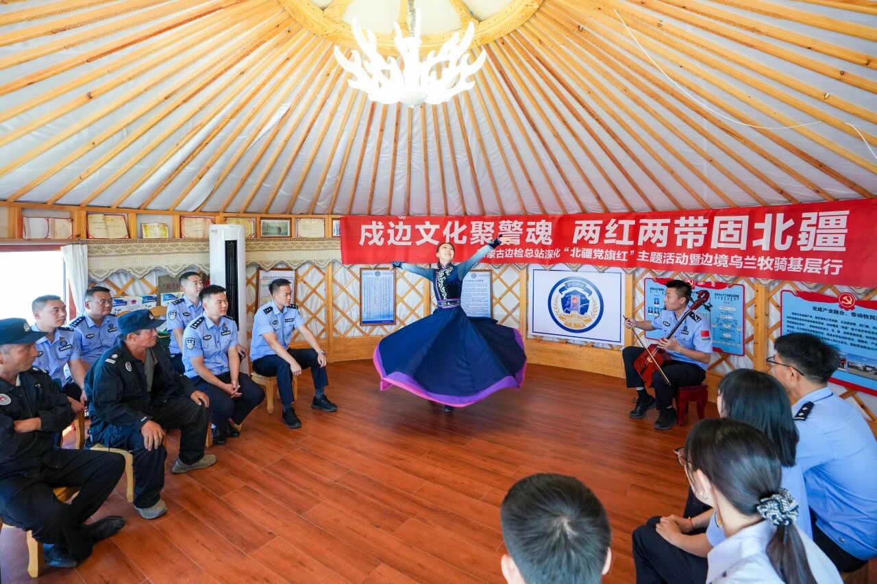 在呼伦贝尔边境管理支队嵯岗边境派出所辖区、护边驿站等地,乌兰牧骑队员与民警同吃同住,并肩巡逻,组织“毡房党课”,与广大民辅警共同学习习近平新时代中国特色社会主义思想。队员们还带来《守望相助》《戍边人》等一批贴近戍边生活的文艺节目,既展现了民族艺术的感染力,也在潜移默化中凝聚起“扎根边疆、心向中央”的思想共识。