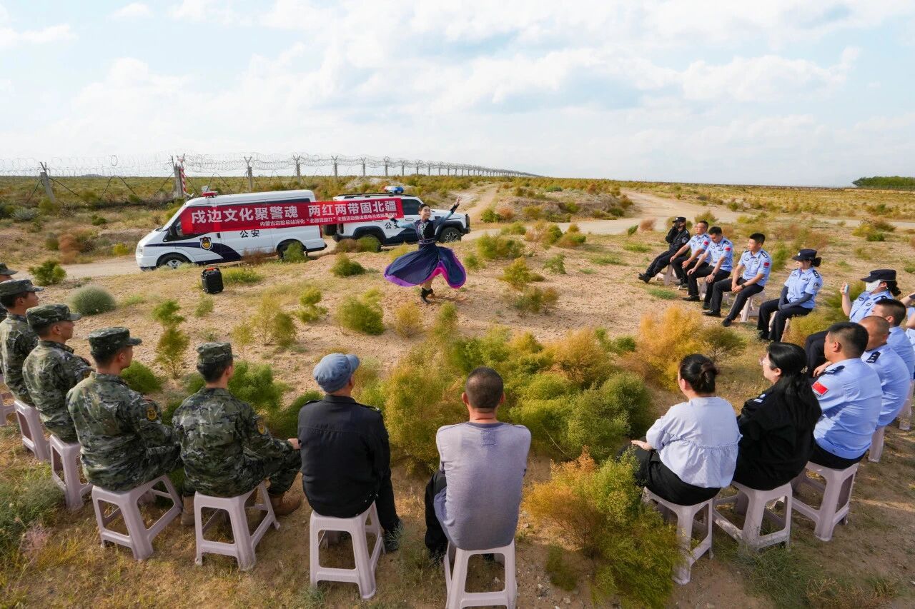 在甘其毛都边检站执勤现场,边境乌兰牧骑与驻地乌兰牧骑联袂献艺,让“民族团结花”绽放在国门之下;在锡林郭勒边境管理支队所属边境派出所、护边驿站和牧民家中,边境乌兰牧骑队员与民警一道,通过文艺节目、政策讲解、发放宣传册等形式,普及国家政策和法律法规,解答牧民群众关心的问题,让戍边文化在潜移默化中深入人心。此次活动累计开展文化服务与法治宣讲20余场,直接惠及群众近3000人。