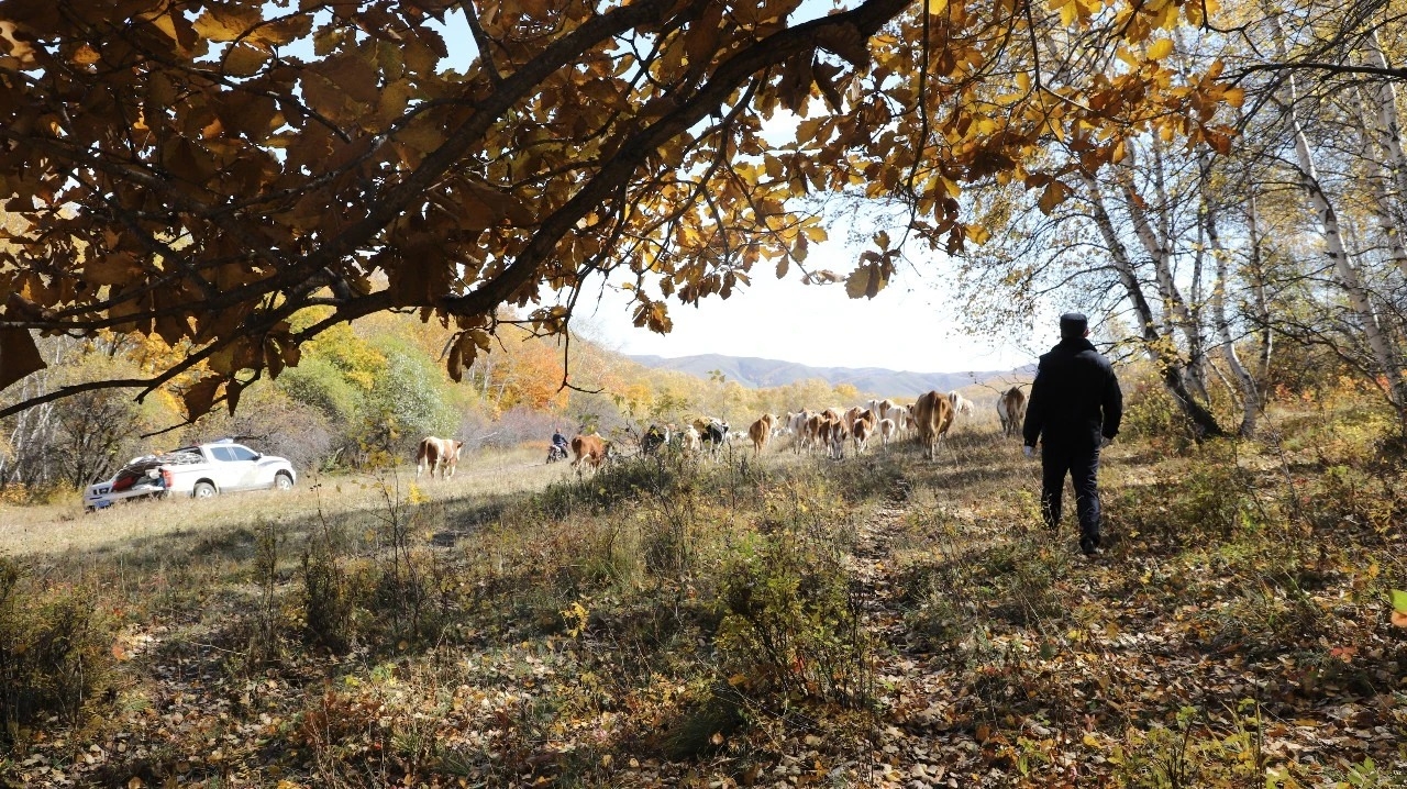 草原十月,秋意浸染,金黄色的牧草在风中如波浪般起伏。当耀眼的中国红铺满大地,举国上下沉浸在欢庆团圆的氛围中时,在祖国北疆辽阔的草原上,一场特殊的“护航”行动正在进行。内蒙古自治区赤峰市阿鲁科尔沁旗公安局巴彦温都尔派出所“敖特尔”(蒙语,意为游牧或迁徙)警务室民警辅警全程为牧区秋季大转场保驾护航。这既是年复一年的“老规矩”,更是边疆基层治理实践的缩影。