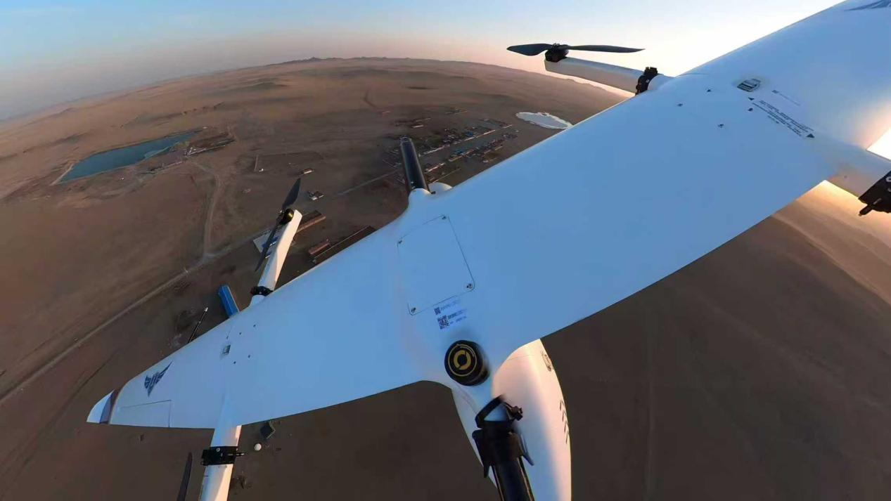 “鹰巡”无人机空中巡边作业。(来源:锡林郭勒盟融媒体中心)