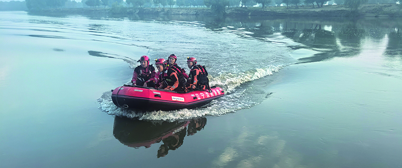 在辽河流域使用冲锋舟对重点区域进行日常巡逻
