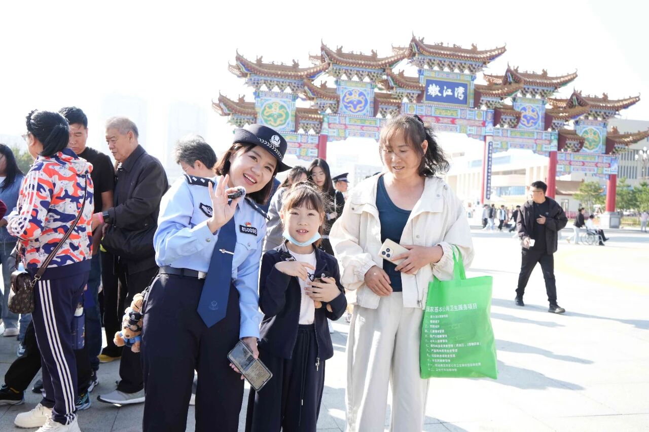 从游客中心走向八角铜镜广场,小邵警官遇到了正在执勤的民警。“假期期间,我们沿核心景点、人流密集区开展巡逻,及时疏导客流、解答游客咨询,全力保障景区秩序与游客安全。”民警的话朴实而有力。