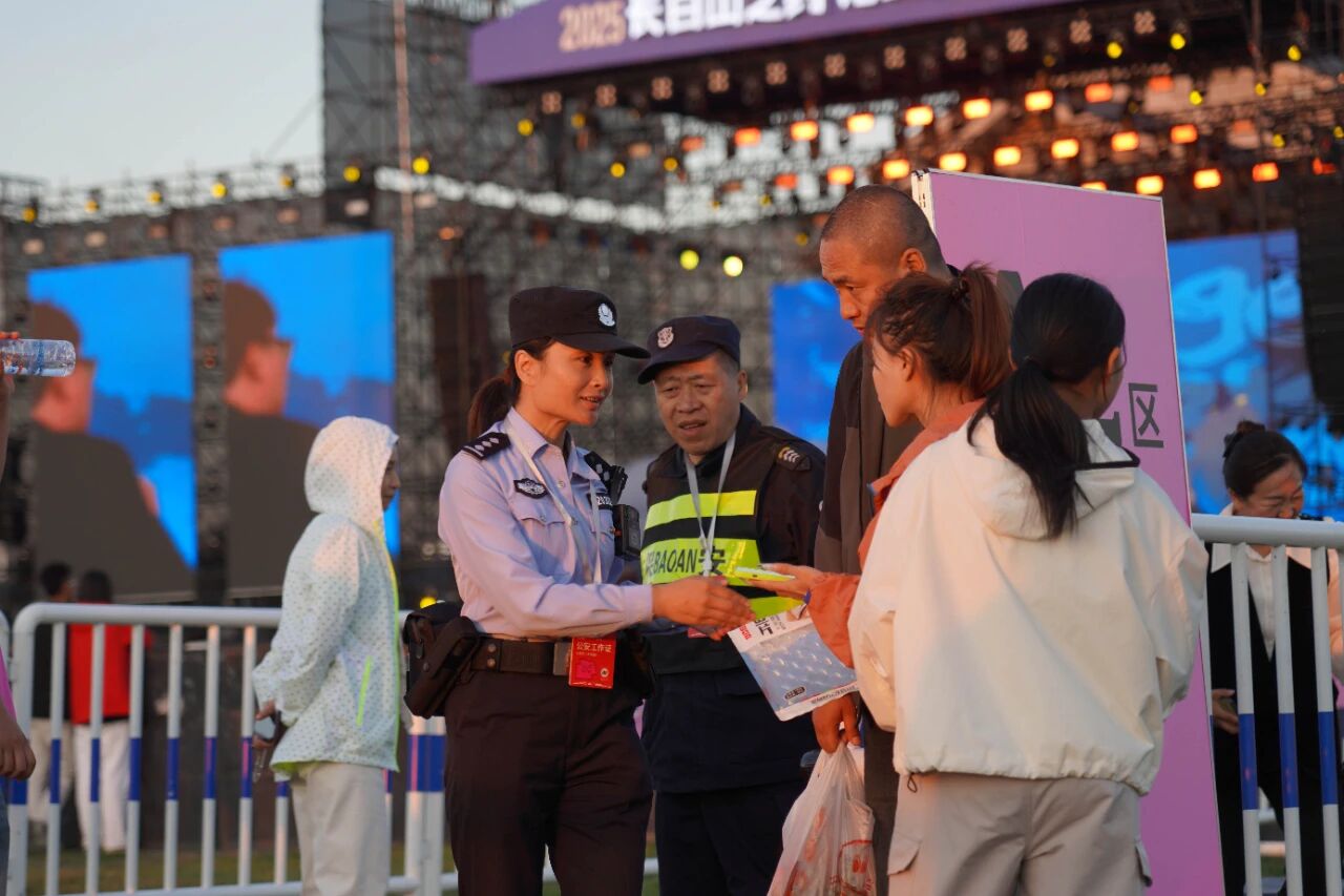 池西区分局、池西边境管理大队民辅警全员上岗,与局机关和抚松森林公安分局支援警力密切配合,定岗定责,在检票口、观众区、舞台区设立多层巡逻圈,克服昼夜温差大、执勤时间长等困难,积极开展巡逻防范和部位管控,全面做好应对突发情况准备,快速解决群众困难,展示着公安民警的良好形象。