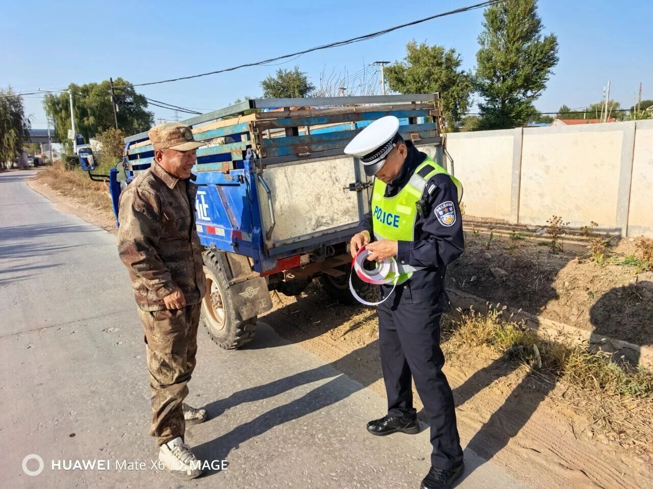民警走进田间地头,用接地气的语言向广大村民宣讲农用三轮车违法载人、酒后驾驶、不按规定让行等违法行为的危害,通过剖析真实事故案例,让农户直观感受忽视交通安全的严重后果。他们还免费为农用车粘贴反光标识,提醒村民在夜间或恶劣天气出行时,一定要多观察路况,主动避让过往车辆,避免因观察不足引发交通事故。