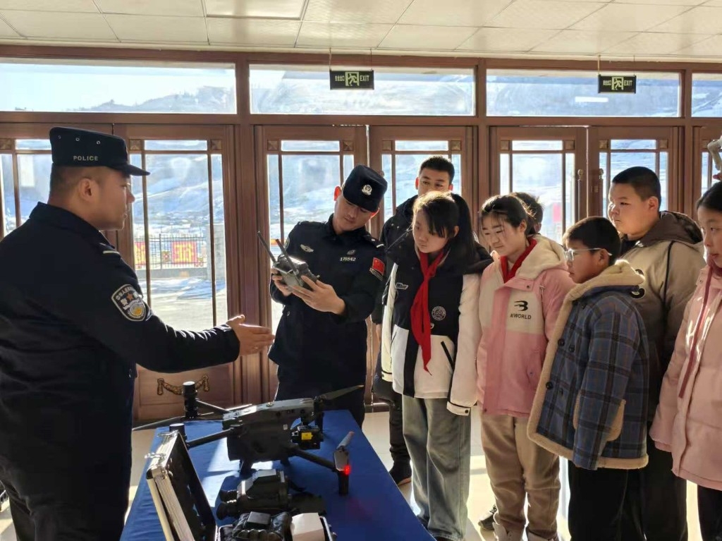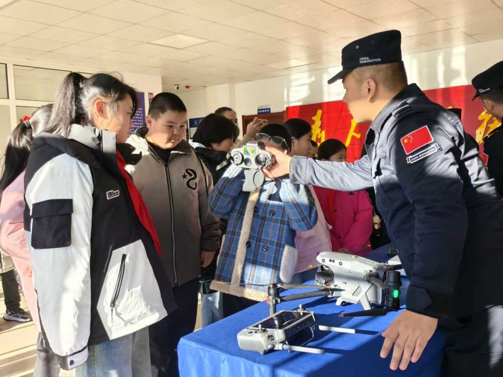 一路上,民警耐心地讲解边境地区的基本情况、巡逻管控的重要意义以及《中华人民共和国陆地国界法》等法律法规。昔日里略显神秘的新式警用装备,包括无人机、警用背包、智能头盔等,此刻成了鲜活的教具,让孩子们对“科技兴警”有了具体而清晰的认识,同时也体会到了巡边工作的艰辛与伟大,对“边境线不能越”这条铁律有了刻骨铭心的理解。
