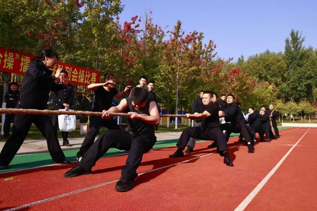 (吉林高院“体技能综合操”擂台赛拔河比赛现场。)
