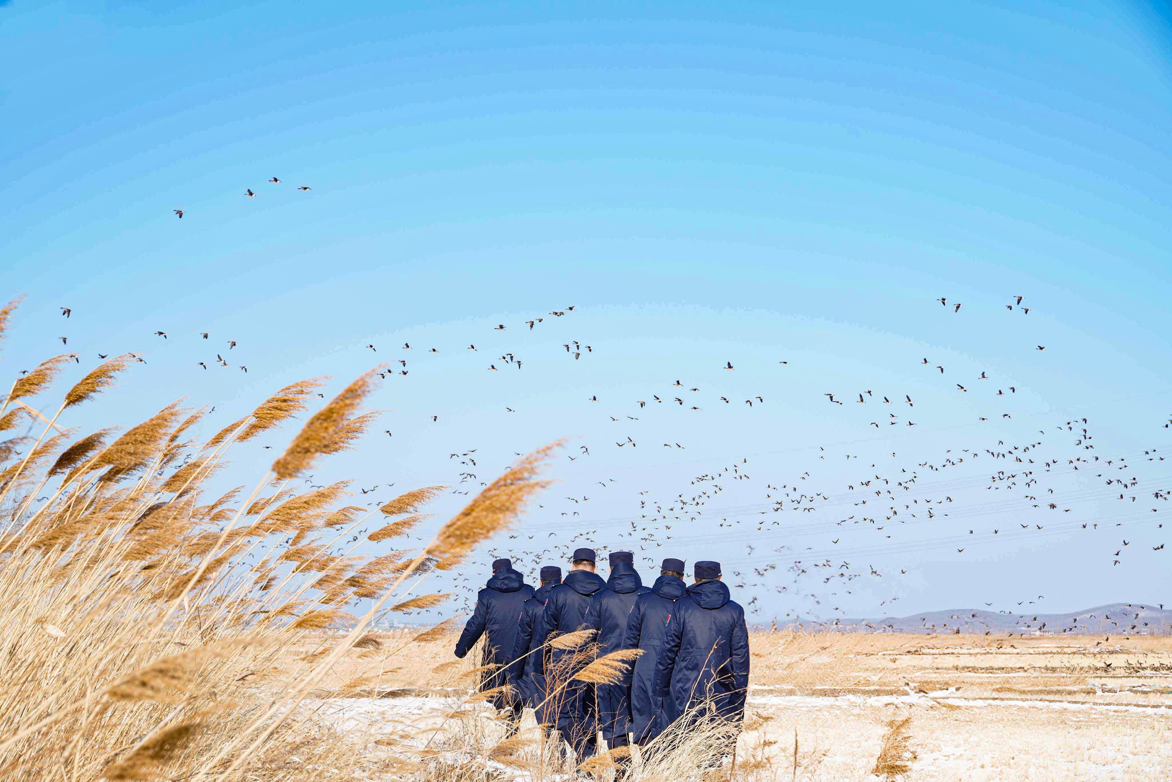 从春日候鸟回迁到秋日候鸟南迁,藏蓝身影始终坚守在生态保护一线,以“国门卫士”的责任与担当践行边境生态保护使命,守护着这片生态福地的生机与活力。