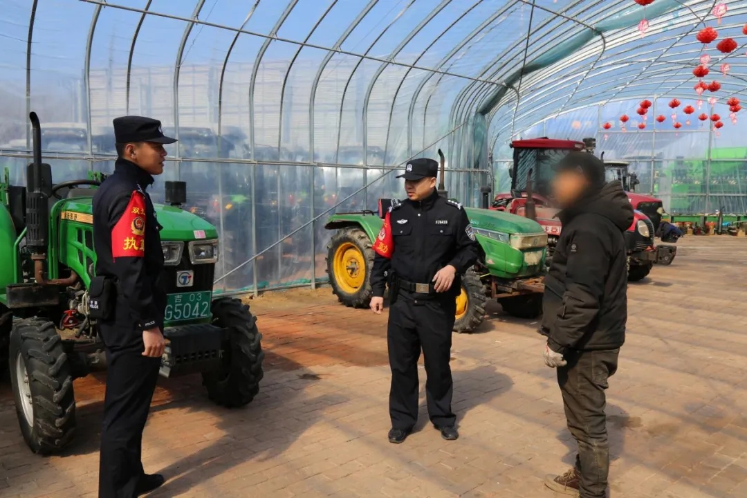 春耕生产,安全先行。针对春季风干物燥、农机使用频繁的特点,派出所民辅警深入辖区农机销售点、租赁点及存放仓库、棚区,开展“拉网式”安全隐患排查。在一家农机店的存放棚区内,民警重点检查消防器材是否配齐、用电线路是否规范、是否存在违规用火用电行为。针对发现的线路老化、灭火器过期等问题,当场提出整改意见,并督促限期整改到位。同时,民警反复叮嘱经营者加强日常巡查,严禁在棚区吸烟或使用明火,防止烟头、火花引燃篷布等易燃物,切实从源头消除火灾风险,为春耕生产筑牢坚实“防火墙”。