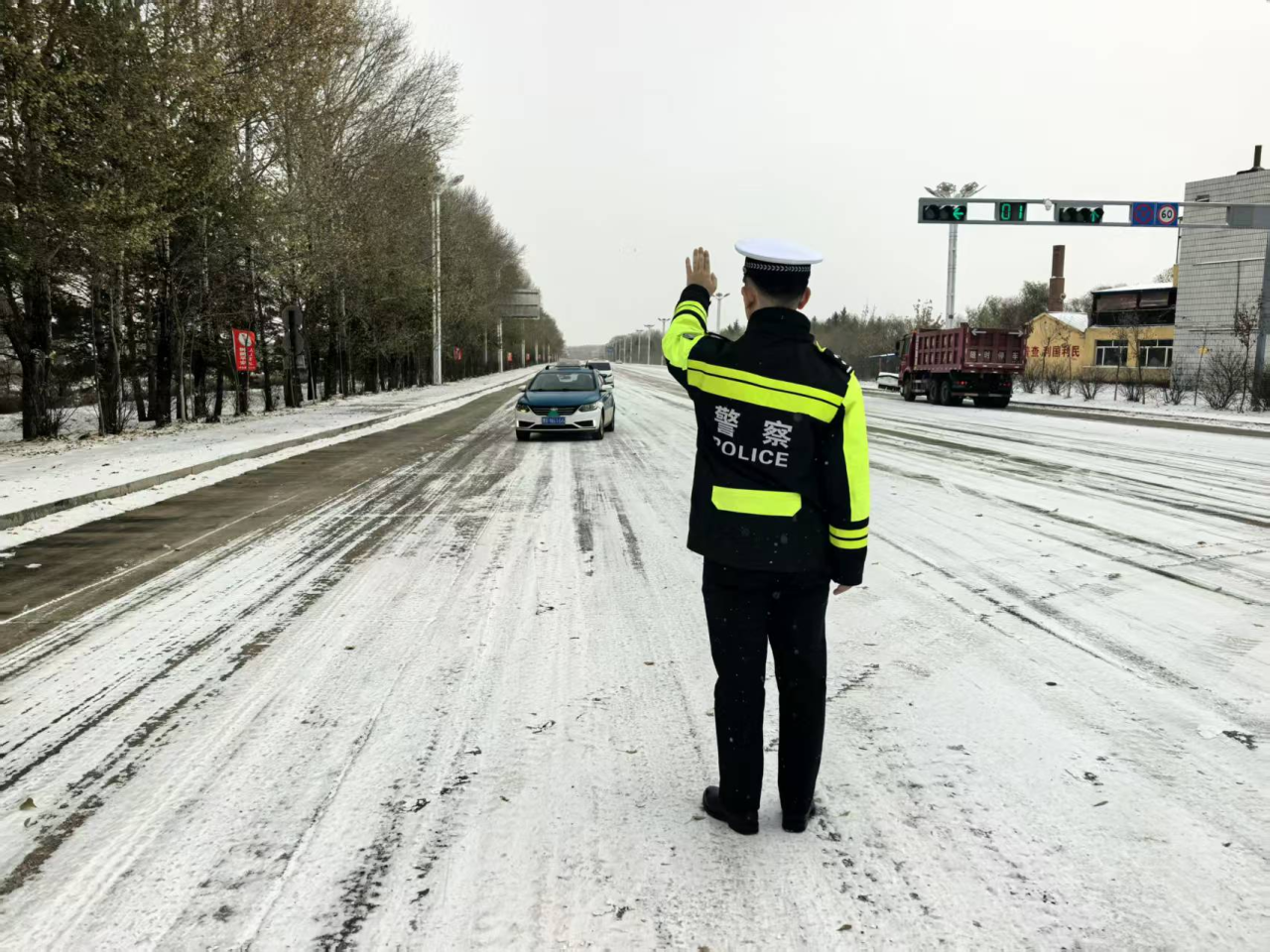 当暮色里的警灯与万家灯火相呼应时,垦区公安交警的肩头已积了雪。对他们而言,极端天气里的每一次俯身、每一回坚守,都是对“警察”二字最朴素的注脚:风雪不停,守护不止;垦区的寒夜里,总有人以藏蓝为甲,把平安焐成最暖的光。