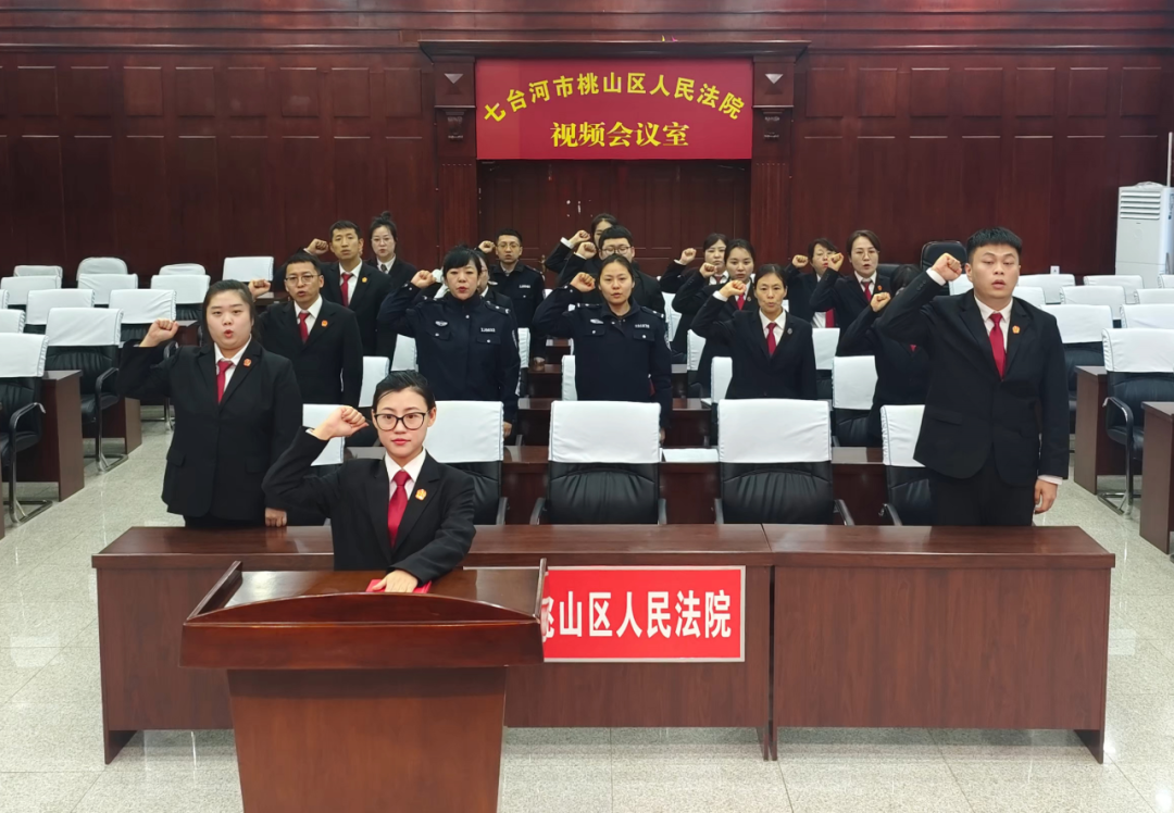 七台河市桃山区人民法院举行宪法宣誓仪式。“我宣誓:忠于《中华人民共和国宪法》,维护宪法权威……”全体干警庄严宣誓,誓言铿锵有力,字字千钧,彰显着干警对宪法的坚定信仰,对职责使命的执着坚守,以及对公平正义的郑重承诺。