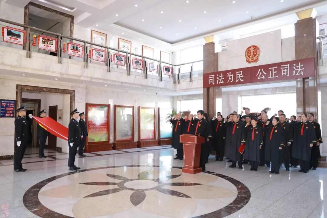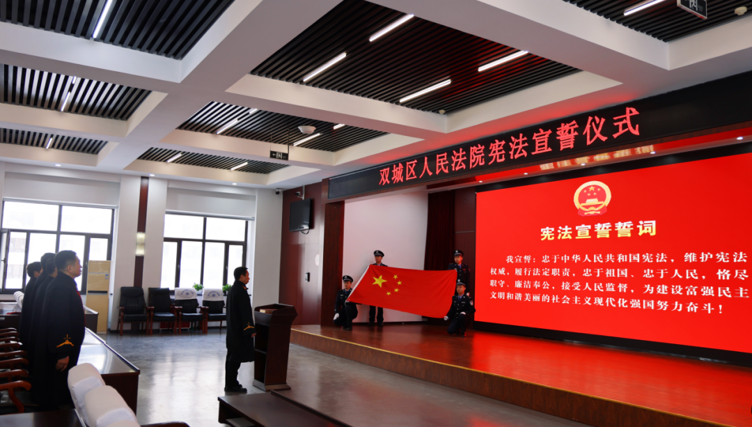 哈尔滨市双城区人民法院组织全体员额法官举行宪法宣誓仪式。宣誓人员齐唱中华人民共和国国歌后,举起右拳,面向国旗庄严宣誓。此次宪法宣誓活动激励全体员额法官切实肩负起宪法与法律赋予的神圣职责,将宪法精神融入每一次司法裁判,全力推进各项工作争先创优,为哈尔滨高质量发展可持续振兴提供更加有力的司法服务和保障。
