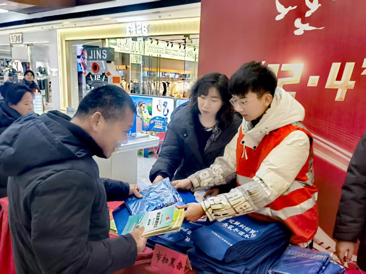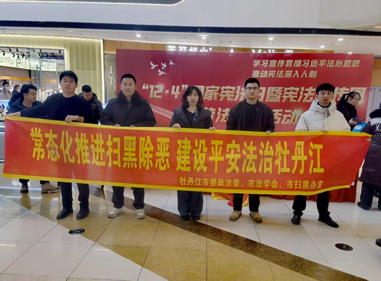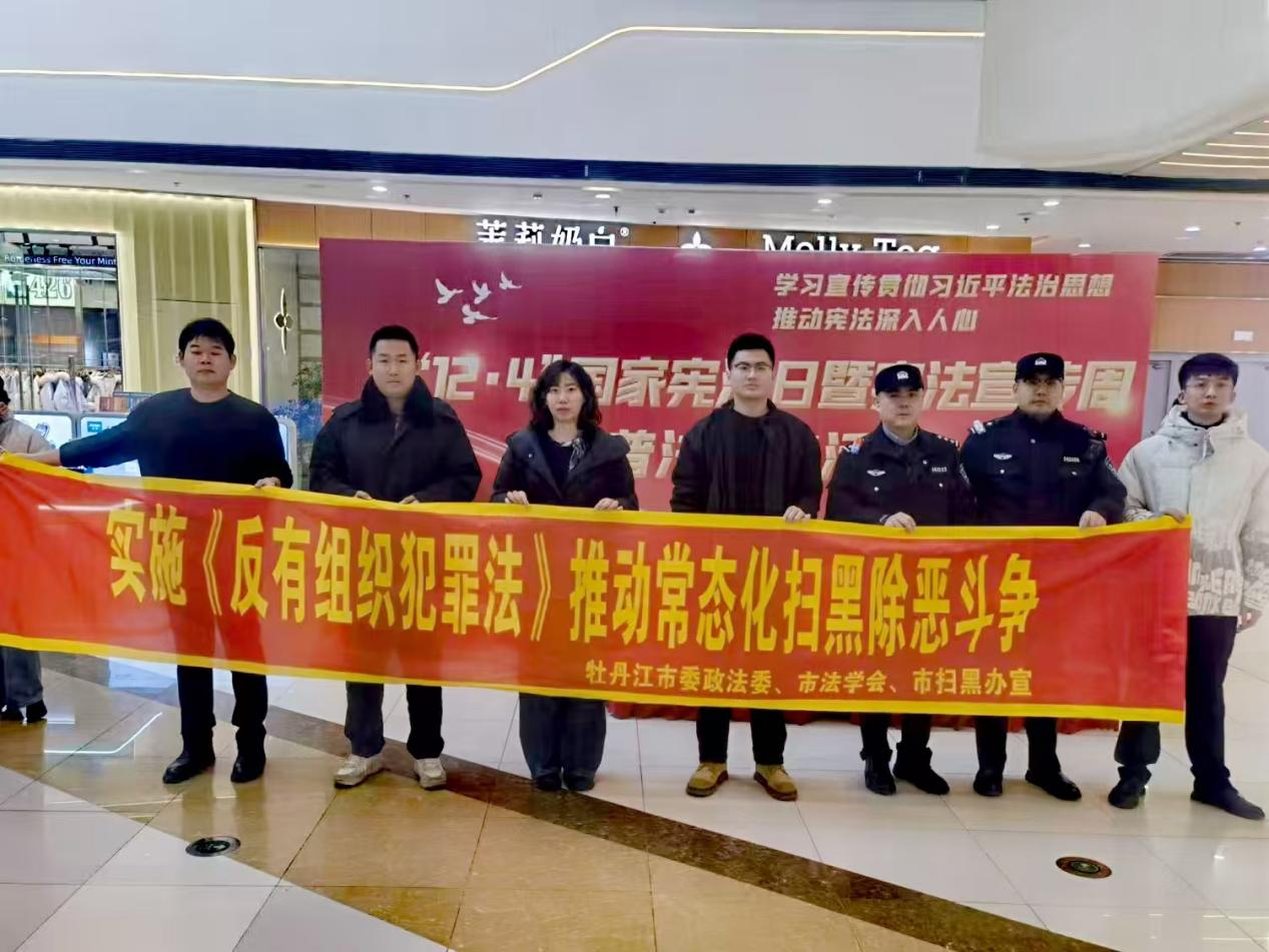 12月4日,在我国第十二个宪法宣传日之际,市扫黑办联合市司法局、市法学会等相关部门在牡丹江市万达广场宣传常态化扫黑除恶工作和《反有组织犯罪法》,活动中通过发放宣传资料、宣传手袋、法律咨询等多种形式,向广大人民群众详细介绍了常态化扫黑除恶相关法律法规和牡丹江市007信箱、6331234线索举报电话等举报渠道。