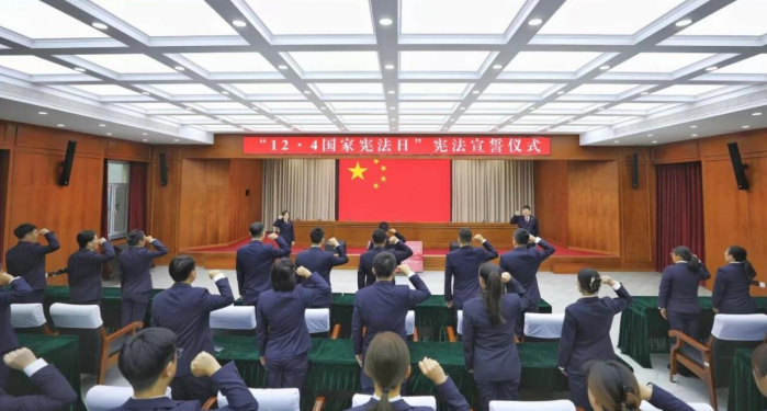 12月4日,大庆市人民检察院举行宪法宣誓仪式,深入学习贯彻习近平法治思想和党的二十届四中全会精神,以铮铮誓言宣告对宪法的忠诚与敬畏,凝聚起以检察工作高质量发展支撑和服务中国式现代化大庆新实践的磅礴力量。