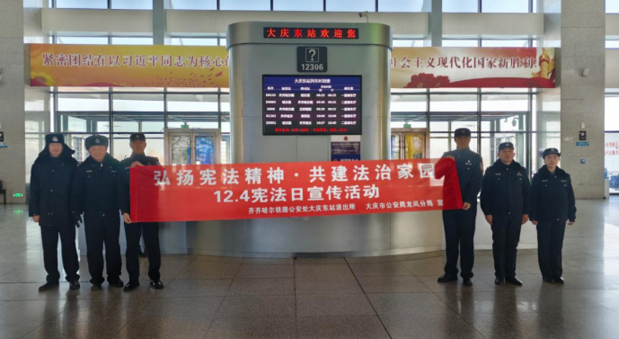 12月3日,大庆市公安局龙凤分局召开青年民警宪法专题学习会。通过集中领学的方式,引导青年民警牢固树立“宪法至上、法律面前人人平等”的法治理念,自觉做尊法学法守法用法的模范。12月4日上午,在大庆东站便民服务站设立主宣传点,开展“弘扬宪法精神共建法治家园”主题宣传活动。12月4日下午,组织由法制、治安、社区骨干组成的普法小分队,深入辖区街道、社区及中小学校开展“宪法润万家·法治伴成长”主题宣传活动。