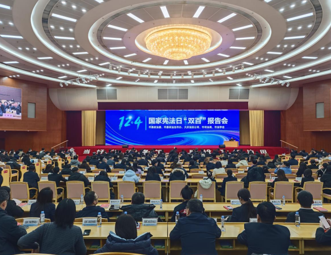 12月4日,由大庆市委政法委、市委依法治市办、大庆油田公司、市司法局、市法学会共同举办的2025年“12·4”国家宪法日“百名法学家百场报告会”举行。黑龙江司法警官职业学院党委书记高权,围绕“学习贯彻习近平法治思想美好生活与法同行”作专题辅导。党委、政府相关单位和大庆油田公司本部及所属二级单位共450名工作人员现场参加学习。