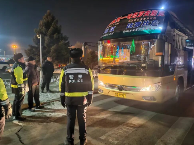 为保障佳木斯经同江至俄罗斯比罗比詹的国际客运班线出行安全,佳木斯市公安局交管部门民警对国际客运班线车辆的安全状况进行了全面检查,确保车辆符合长途跨境运输安全标准。民警提醒驾驶人遵守中俄两地交通法规,控制车速、保持车距,严禁疲劳驾驶,注意冬季路面防滑,确保跨境段行车平稳。同时提醒乘客全程系好安全带,遵守出入境管理规定和候车乘车秩序,遇突发情况配合警方及司乘人员的指挥。最后,民警向旅客发放中俄双语安全提示卡,进一步增强旅客交通安全出行意识与自我防护能力。