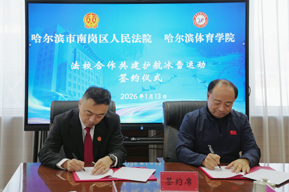 哈尔滨体育学院相关负责人表示,此次合作为冰雪人才培养注入法治基因,推动体教融合向纵深发展。