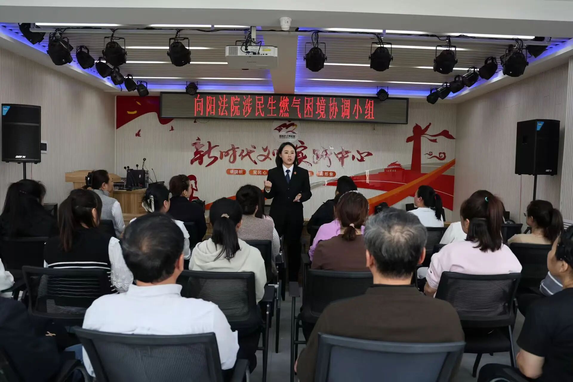 向阳区法院法官组织燃气公司工作人员、开发商代表、社区工作人员及20余名业主代表召开协调会,通报燃气管道通气进展。